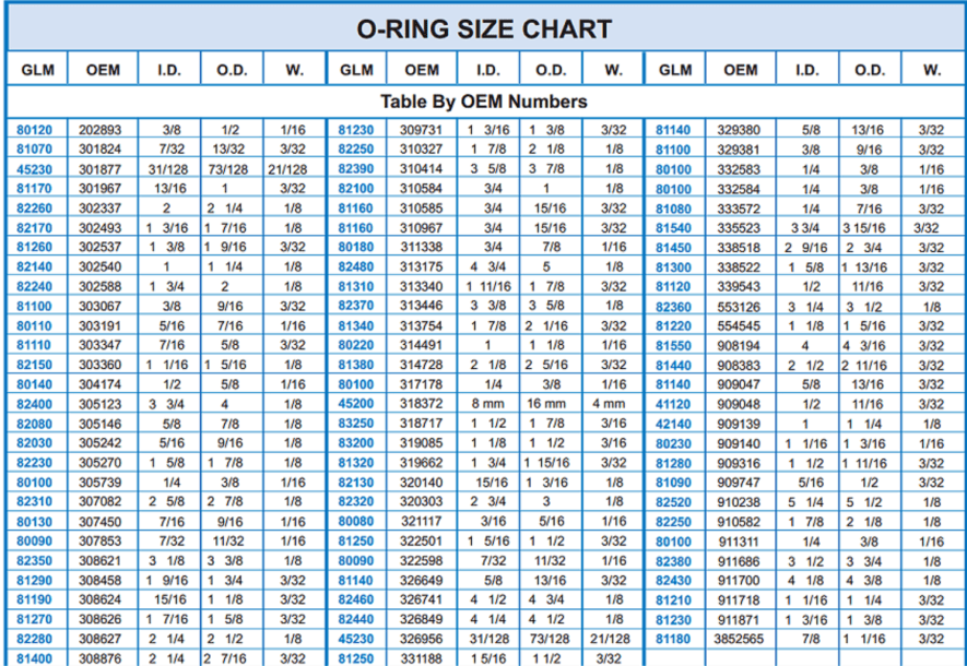 December 16, 2021 at 8:00 pm #251206I’m with Dale on this. I can usually find a correct O-ring at my local Ace Hardware that carries a huge assortment of pieces. Here’s a couple reference tables I often use to find the corret size. If you have the original OMC part number, you can find it here and either buy a Sierra or GLM equivalent O-ring or use the listed dimensions to find one at a hardware store.