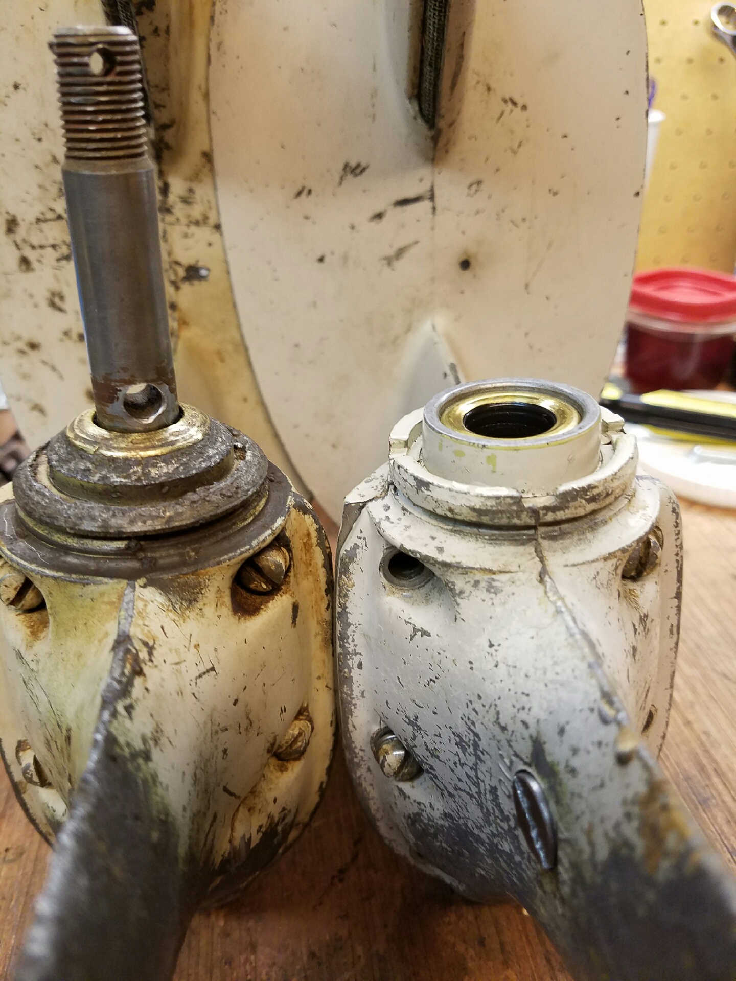 January 14, 2017 at 4:10 pm #51024The one on the left obviously is trashed by some sort of debris behind the prop. It need a replacement head and bearing assy (the part on the right). Various years / versions are interchangeable.