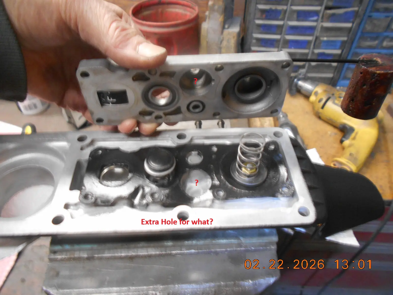 Hey Buc, I’ve never seen an extra hole that you’re referring to in the diaphragms. The only extra hole is in the earlier diaphragms for tanks that had the aluminum push rod like that tank, and not the black plastic button. And the Junior tanks did originally have slots and chains just like the 6 gal.