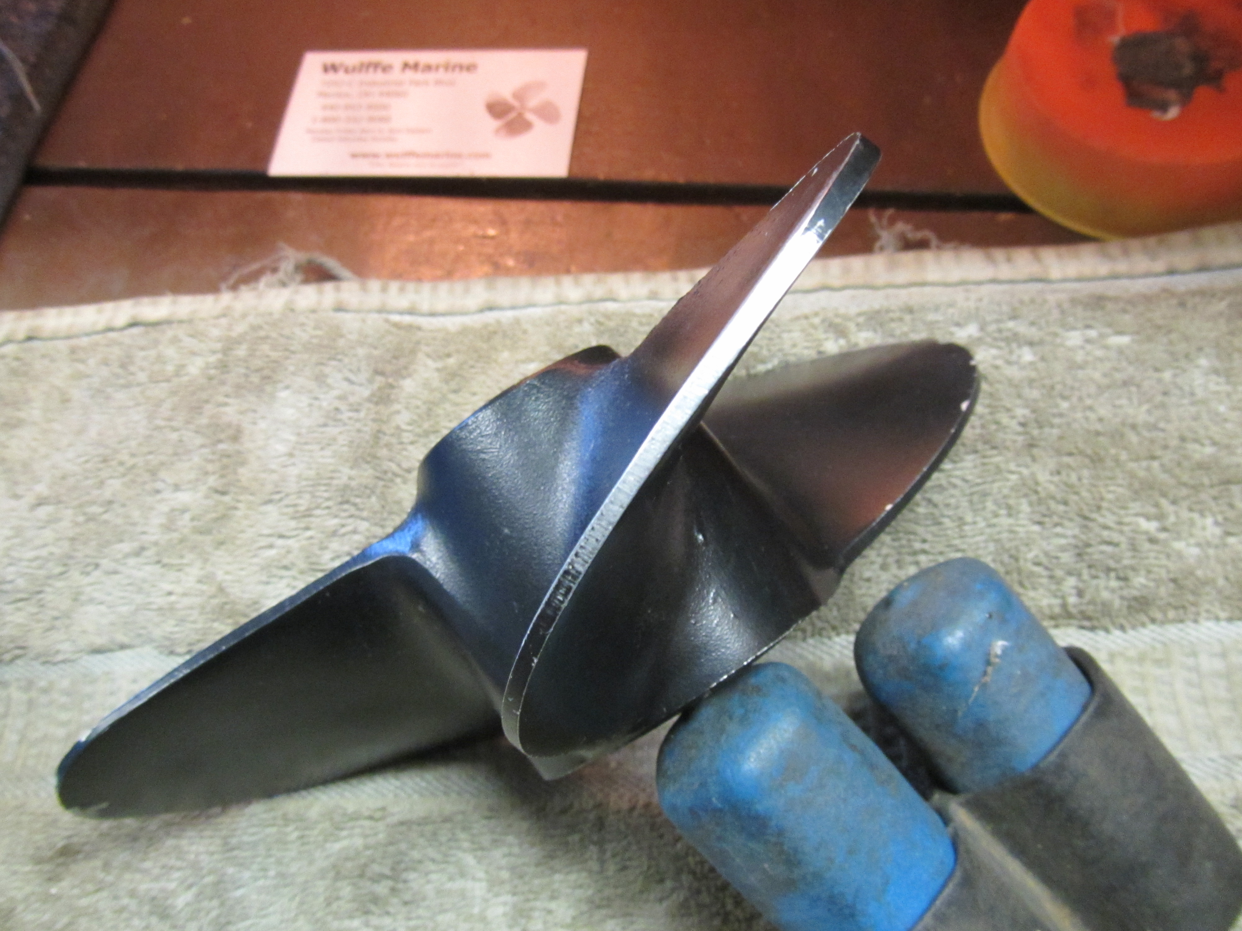 Dale, The flat leading edge is certainly odd to see. I am no prop expert by ANY STRETCH but believe a smoothly rounded, semi-sharp leading edge to be the best. A knife edge can lead to some cavitation. Although I have to believe the flat edge would be worse than the knife edge for cavitation as well as performance. I dont know the application for a Michigan PJ 016, but it looks like a fairly small prop, maybe for an OMC 4hp around late 60s to early 70s. I could be completely off though. Just going by shape in the photo.