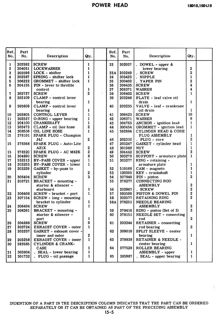 April 8, 2022 at 10:24 pm #257783We are looking at using the crankshaft from a model 15918 to replace a the crankshaft in a model 15016. I recall that on RD-18 (30HP) motors you have to change the crankshaft bottom roller bearing to change to a carbon seal. The carbon seal runs against the top surface of the changed bearing. The model 15016 bottom crankshaft bearing is a plain bearing so I am guessing that model will have to have the lip seal. Anyway if anyone has a parts list for Model 15918 that would set us straight on the seal type and maybe we could tell if the crankshaft could be used in a Model 15016.