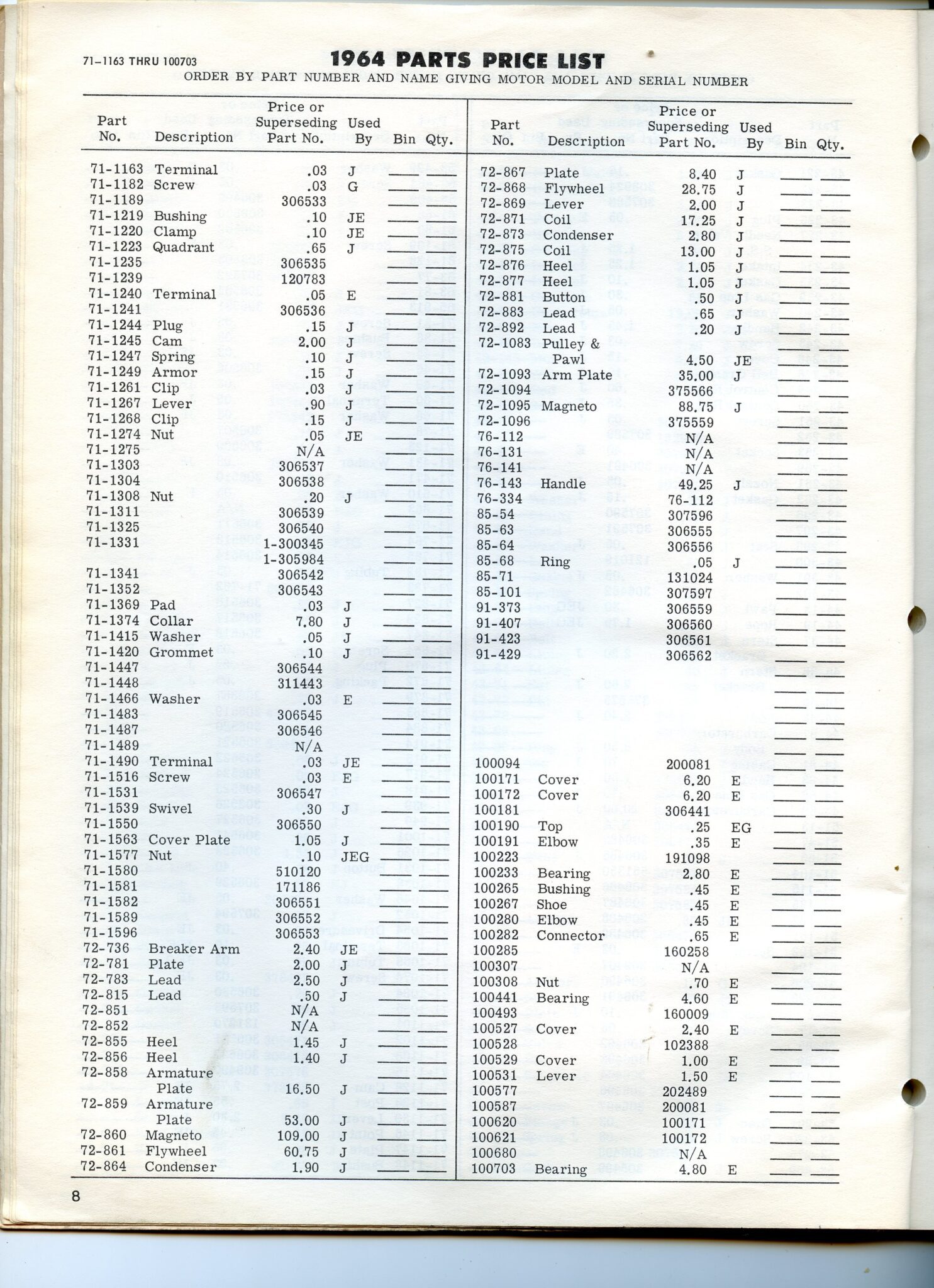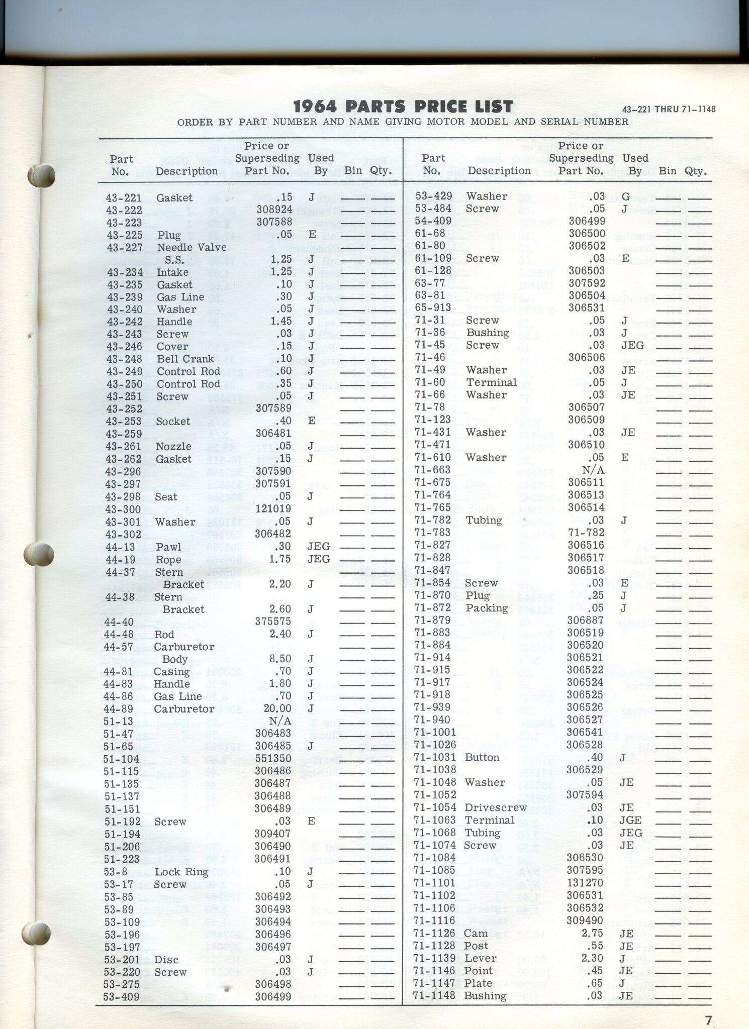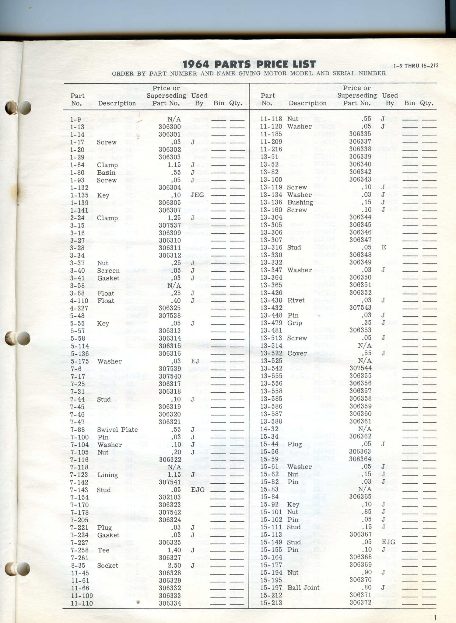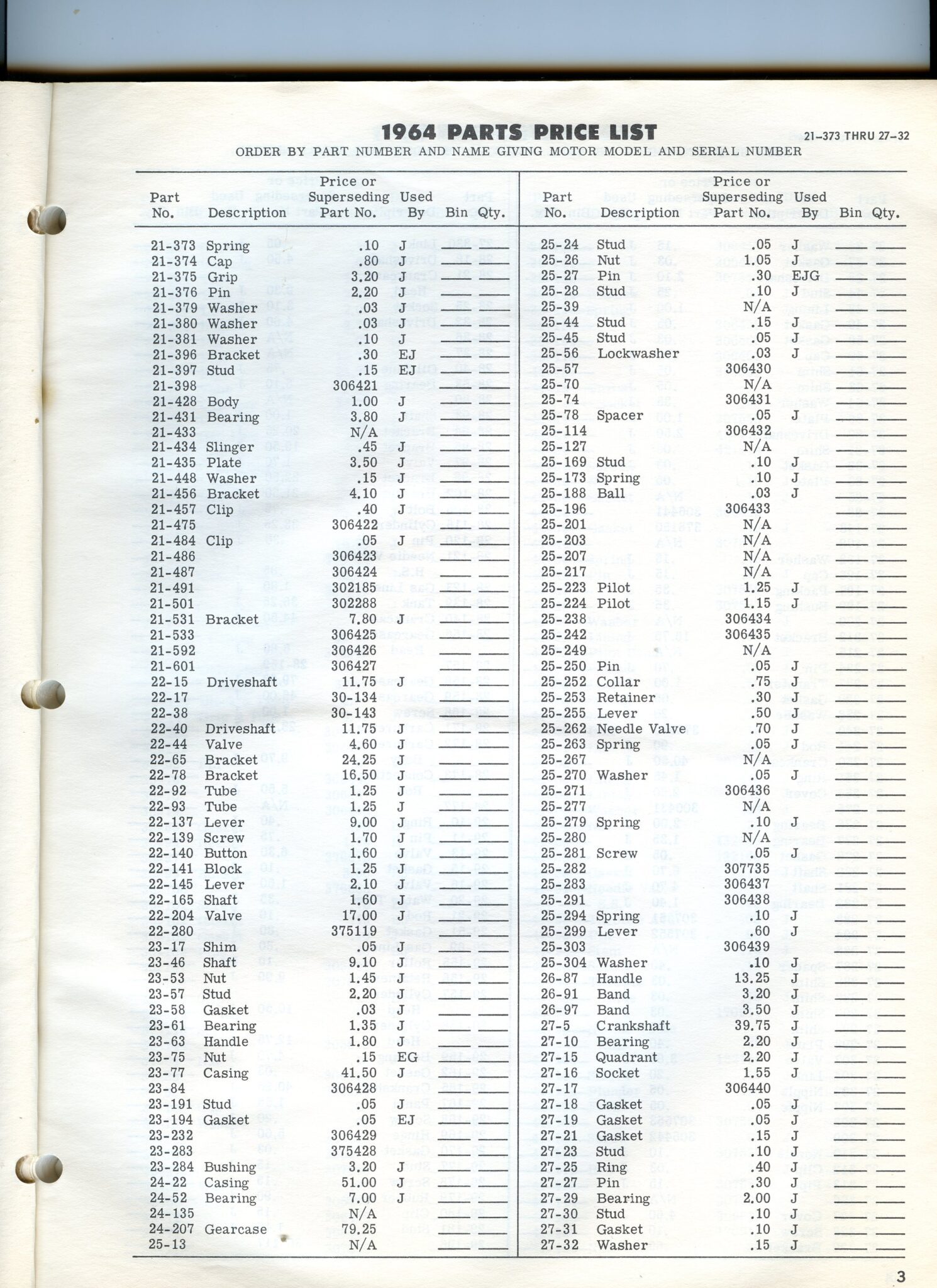 Type in the OMC part number, the superceded part number(s) should come up. This may not work for some of the early part numbers with the – mark though.
