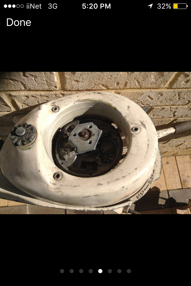 looks like somebody cut apart and then broke off the flywheel so they could salvage the coils and points, I guess he didn’t have a flywheel puller 😯