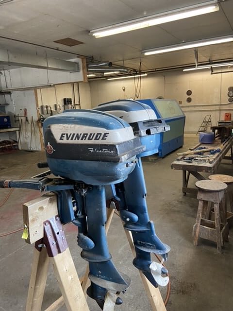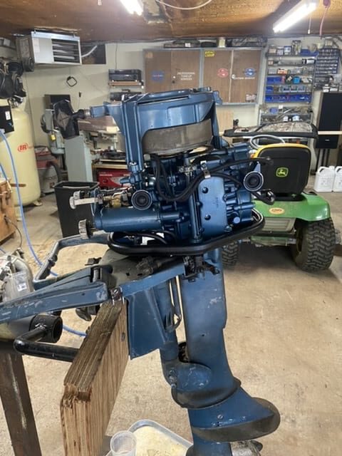 Just a side note when checking OMC 5.5-7.5, 10hp gearcases. Do not remove the water pump screws, then perform the pressure test. The water pump screws hold the upper bushing seal housing in place as well. Pressurizing the gearcase with no water pump screws will probably just push the bushing/seal housing up and off its gasket. I realize it is tough to pinpoint leaks up there with the water pump in place. You could remove the impeller housing/impeller, then secure the upper bushing seal housing in place with shorter 10-24 screws to hold it in place while testing.July 11, 2021 at 7:26 pm #242502It’s a 1956 fleetwin. 7.5 hp. Georgeous shape. Had a little milky look in the gear case oil. Not sure if it warrants a tear down? That’s why I’m thinking of a pressure test.