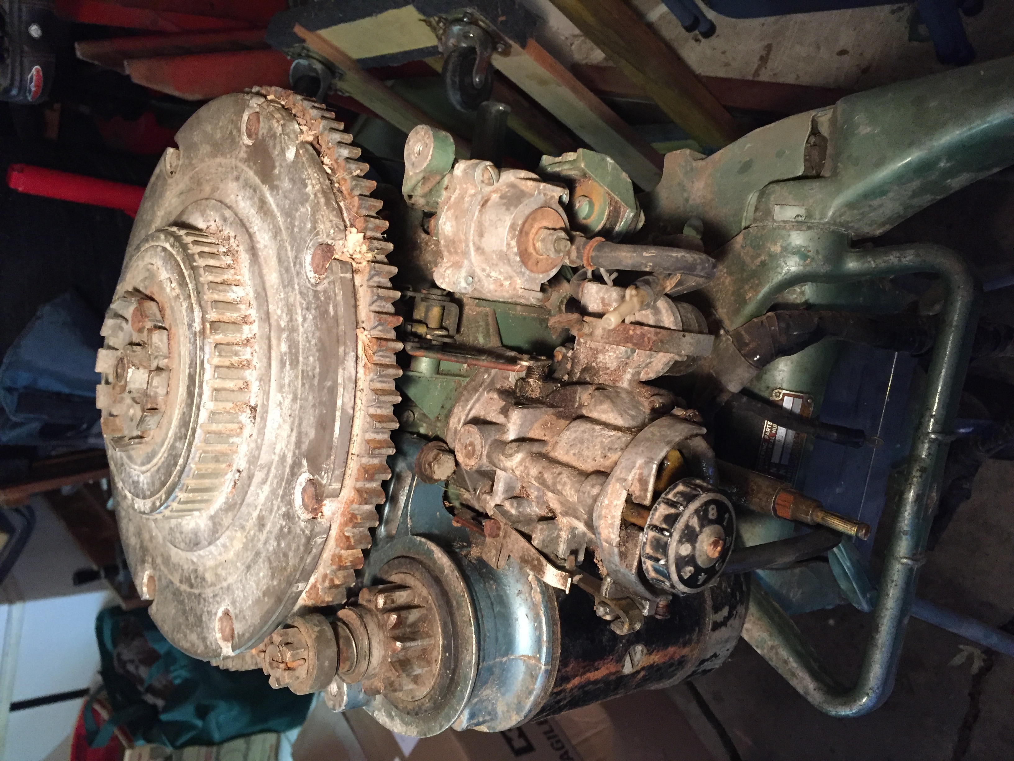 November 30, 2016 at 12:48 am #48238Thanks Adam. This motor was tinkered with in the past. Someone tried to convert to a fuel pump but they gave up after removing the engine end connector. I pulled pieces of fabric insulation out of the top cylinder thru the spark plug hole. It’s going to need taken apart before any attempt of starting it. I will search for the correct flywheel and recoil starter.