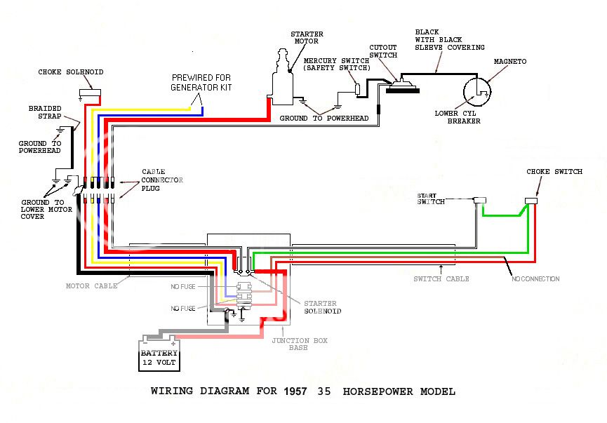 classicomctools@gmail.comAugust 24, 2015 at 10:32 pm #22611August 25, 2015 at 12:10 am #22616This Motor has no battery hook up, starter, choke, nothing but a pull start. I can see the black coming out of the mag and going to the cutout, but mine has 2 blacks coming from the mag. Is the second a ground? There’s about 4 extra wires in that diagram this motor does not have. Does the mercury switch work as a cut out also? or does it complete the circuit.