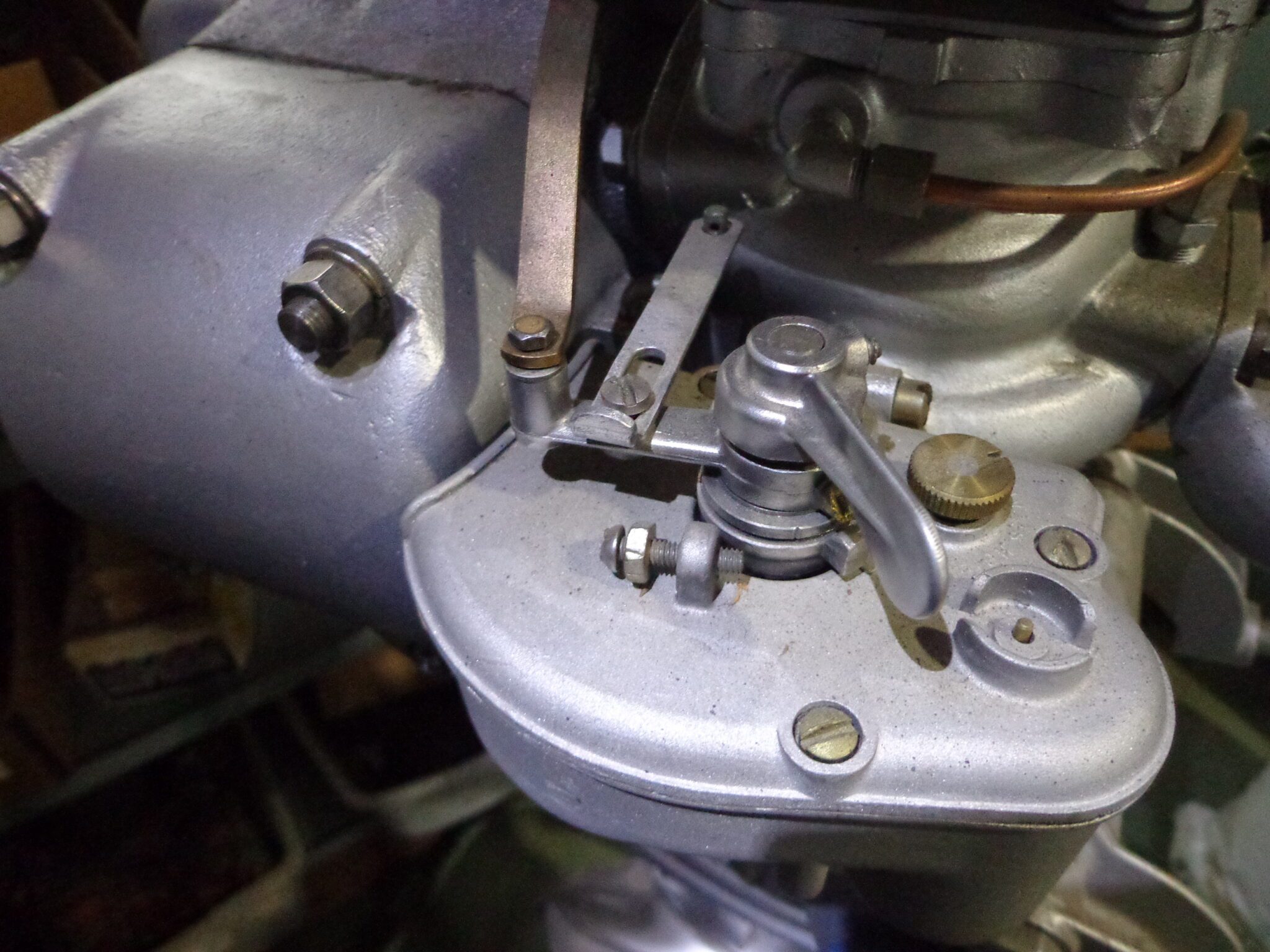 Or is the throttle also the timing plate handle . It advances time and throttle ..April 10, 2022 at 2:23 pm #257896In my photo I was fitting a new replacement carb to the motor, a KA-37. It came with a 70’s style 18-20 horse carb taped onto it. The lever on top is the choke and the throttle is controlled by the mag lever. The missing link in the photo is slotted and connects to a rod which opens and closes the idle air bypass valve on the bottom of the exhaust manifold. It’s a round disc with two holes in it and it should be cleaned out as they like to plug up with carbon from running on the required 8:1 fuel mix. Some models might be slightly different though.