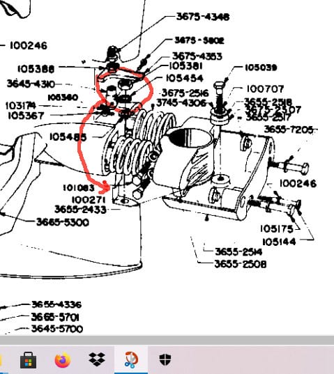 July 9, 2021 at 3:12 pm #242337Don’t hit anything. Can you post some pictures? Your description doesn’t match what my 1960 service manual shows (2 long studs & nuts). However, earlier models do show three fasteners, two screws an a nut. Look for the nut in the area below the lower motor mount, rubber or springs, whichever the case may be.
