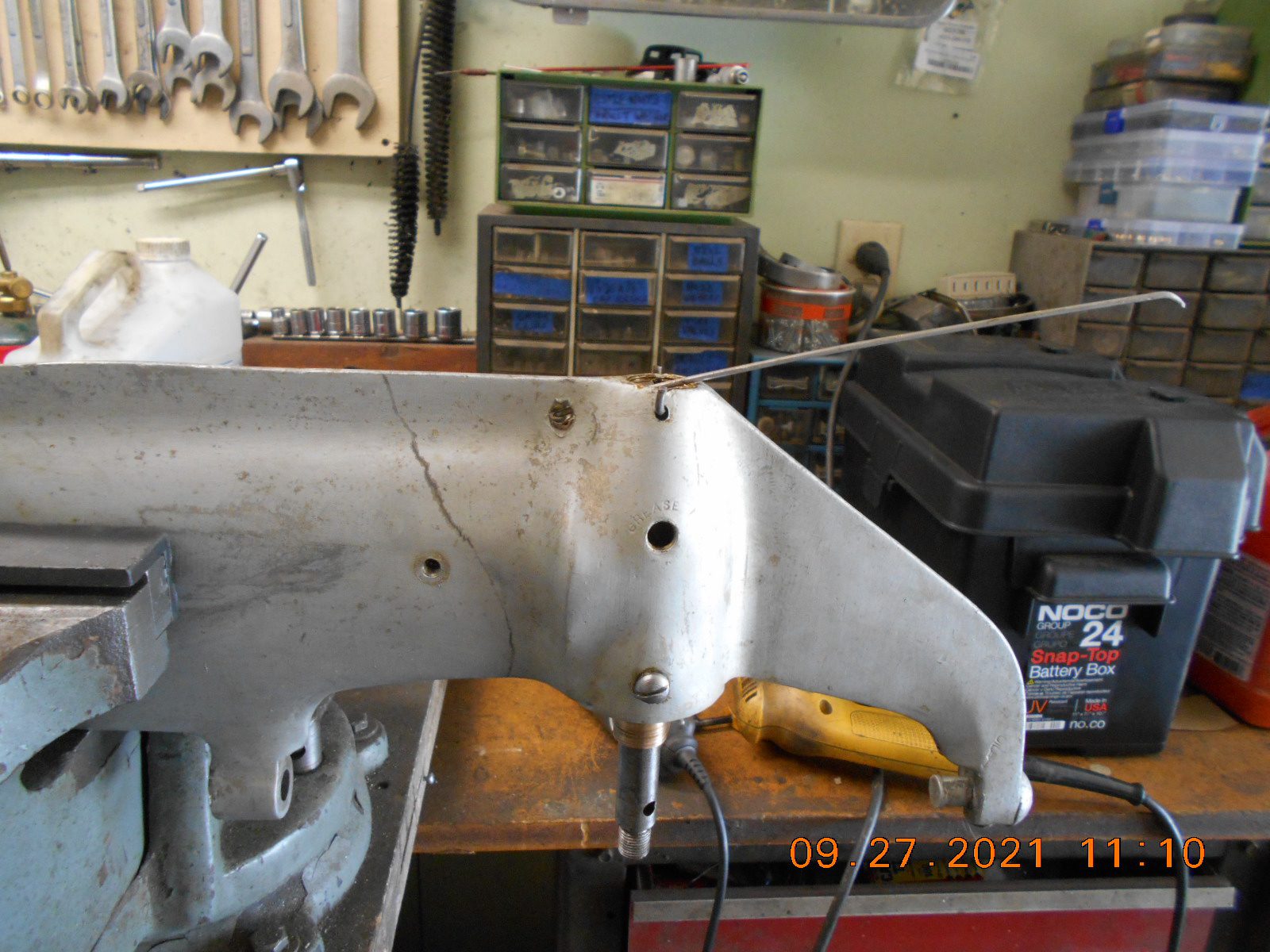 the leg. Someone decided to drill a cross hole through the gearcase,