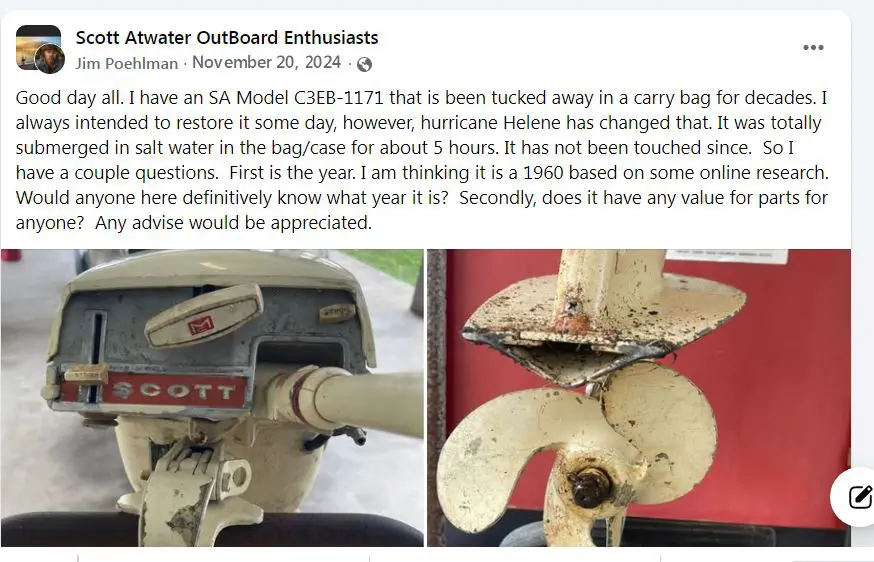 I don’t think he’s a member here but you could probably contact him through Facebook. Maybe he’d be willing to sell you the part? His motor is salt-water seized so…..