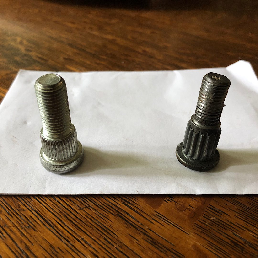 One of the lug studs in my trailer hub was cross threaded when I got it. The trailer is from the late 50s. I have replaced them on cars before with lug studs I bought at a jobber (NAPA, etc) but this one is unique. I’m looking for one like the one on the right with the very pointy ridges. Any ideas? I guess if I can’t find one I may have to buy the correct die and chase the threads if it’s possible. The lug boss is slightly bent too.