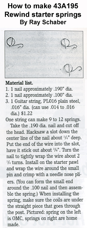 I’ve been asked to post the instructions for making the starter pawl springs so here you go!