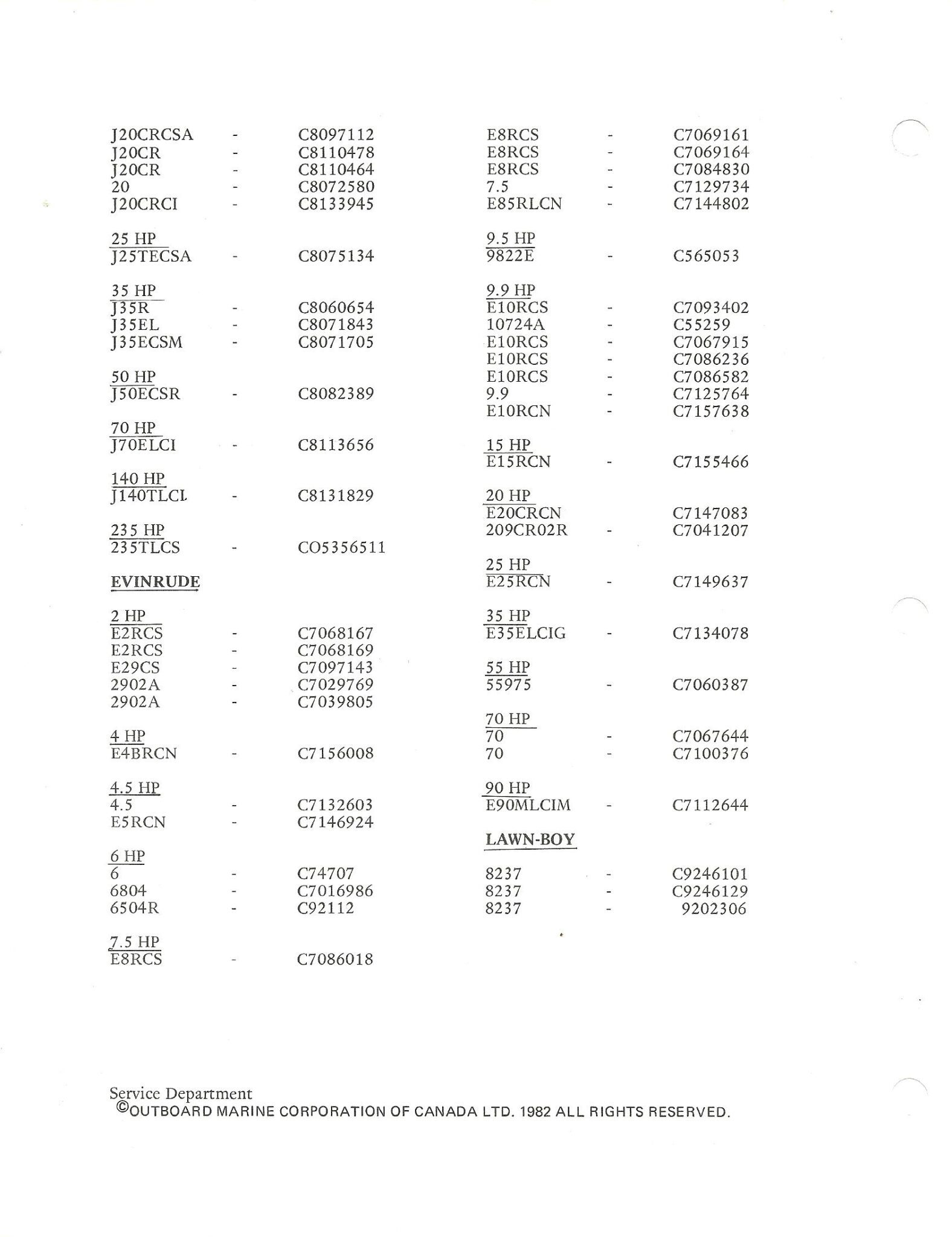 Here’s a couple examples from OMC Canada for ’77 and ’82. Recognize any of the numbers on your prized possessions?