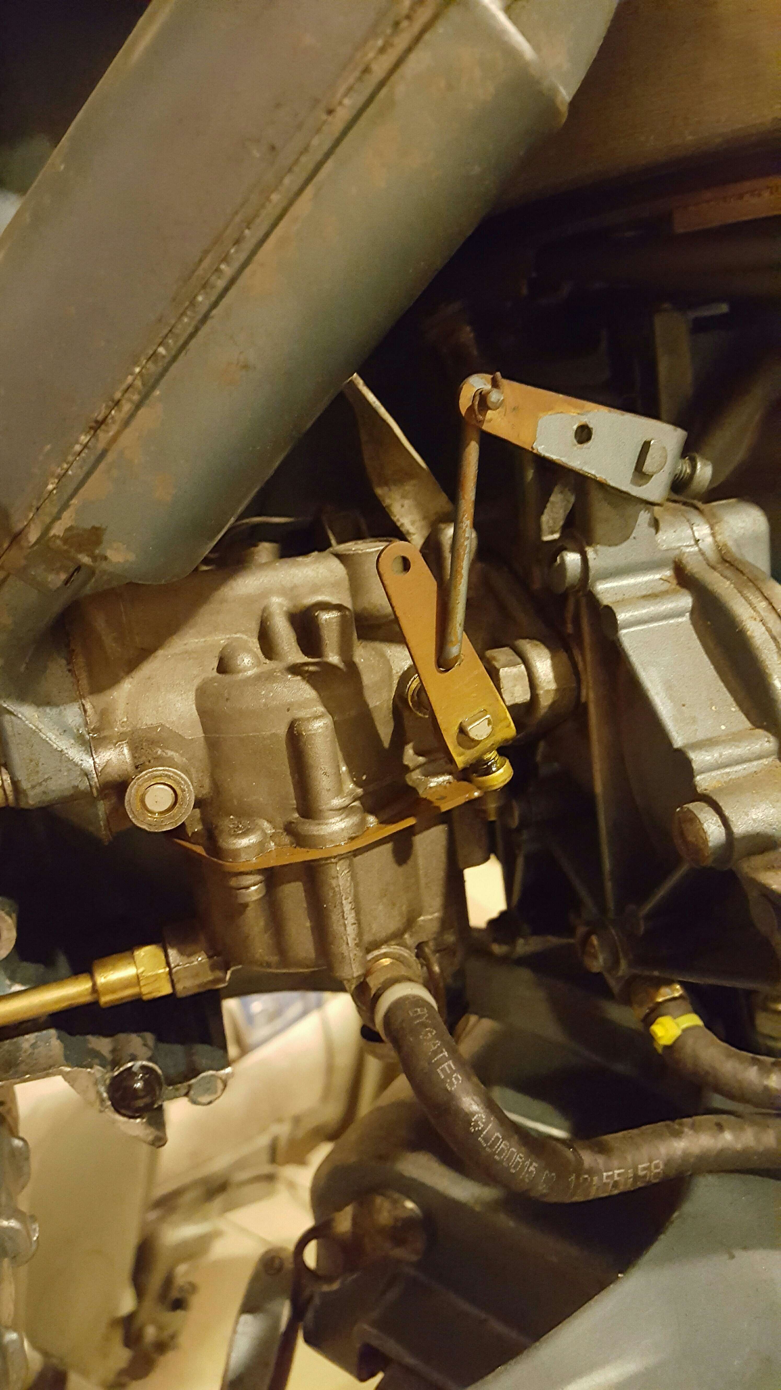 November 22, 2016 at 10:35 pm #47843quote FrankR:Not having one in front of me, I gotta ask this. The link between the cam follower and carburetor lever–do the two levers have more than one hole in each? I am thinking the link rod goes in the outermost hole in the cam follower lever and the innermost hole in the carburetor lever. At least that is the way I remember it without having one to look at.