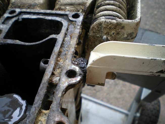 July 7, 2023 at 6:26 pm #277820You can replace any of the items #9 through 14 without opening up the crankcase. #13 is the carbon seal and #14 is the o-ring located within a groove in the carbon seal. You’ll need some snap ring pliers to remove the retainer clip #9. When removing that clip, hold downward pressure on the assembly so the spring and washers don’t go flying all over the shop. The carbon seal is somewhat delicate so remove it carefully. When re-installing the carbon seal, one side of the seal has a raised lip on it – that side should face the crankshaft. The other side of the seal has 2 notches that face toward the spring assembly. #15 is an O-ring that fits over the lower crankshaft bearing and can only be accessed by opening the crankcase. Here’s a series of pics showing how the carbon seal, spring/washers, retainer clip all goes together.