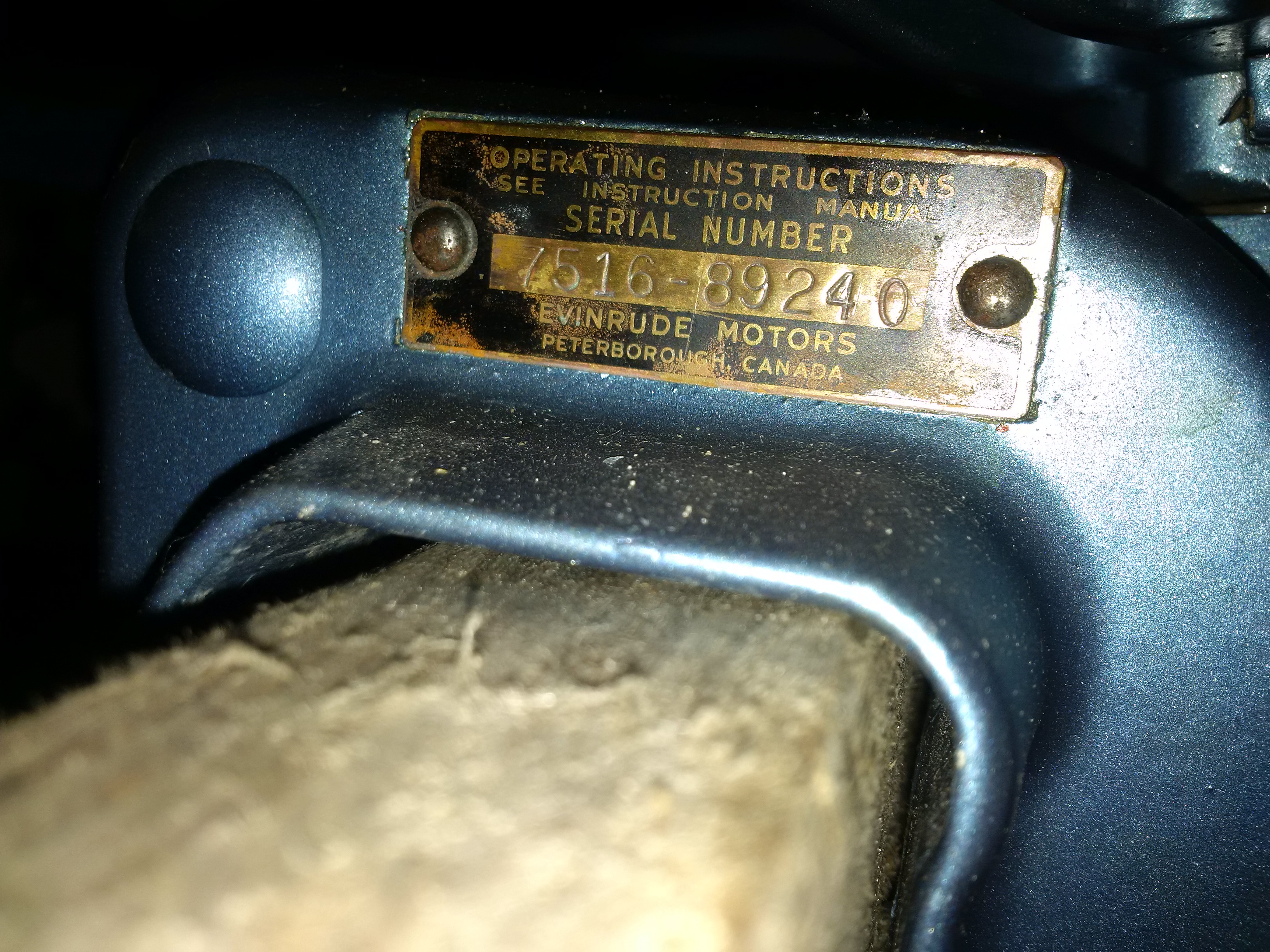 It’s a 1954 Evinrude Model 7516, serial 26442.Wedgie, how does one tell if it’s made in Canada or not?