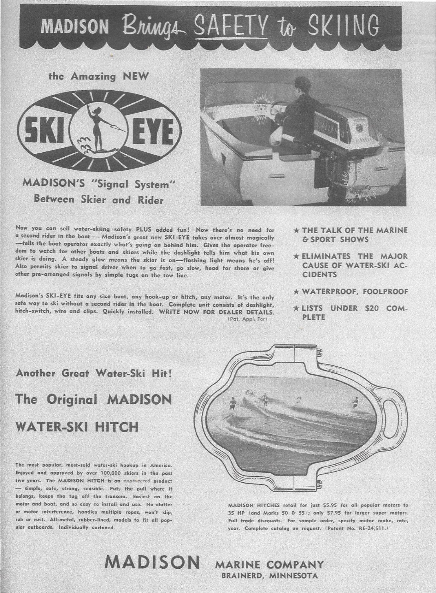 My, how many miles of ski-towing have I done with one of those? Can’t count ’em. And contrary to opinion, they do not harm the motor. In fact, they are less stress on the motor than hitching to the boat.