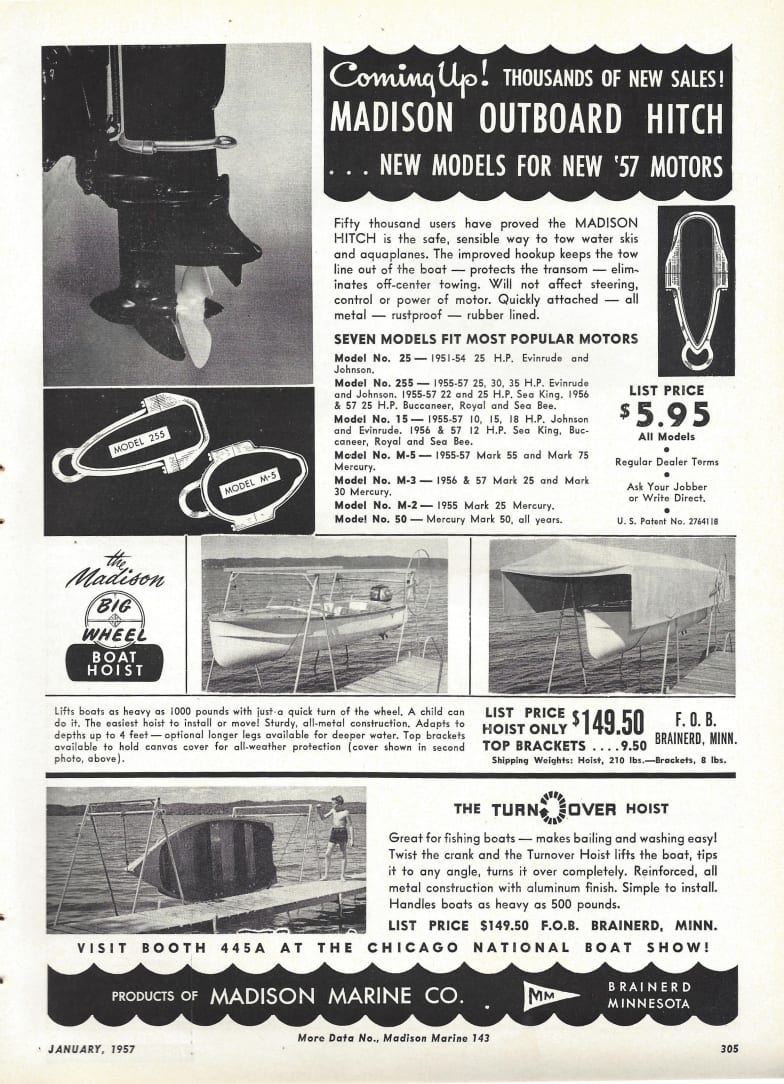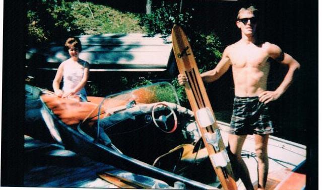 To add to the pulling skiers thing (but not with that bracket), motors back then had a lot more low end torque than the next generation (late 1970s/1980s) motors of similar HP, and boats were lighter then too (except for some fiberglass models). When I was 12 years old, I used to ski double with a friend behind my neighbor’s 1958 18 Johnson on a decked Alumacraft model F ( boat rated for 16 HP). As a teen, I routinely pulled 3 teenage girls on skis at the same time behind a 1960 40 HP Johnson running on a 14′ Crestliner aluminum boat rated for 60 HP max. Photo below of me at age 16 in that boat. The motors used a bit more gas than later ones, and needed a bit more TLC, but performance for pullin’ skiers up was great!