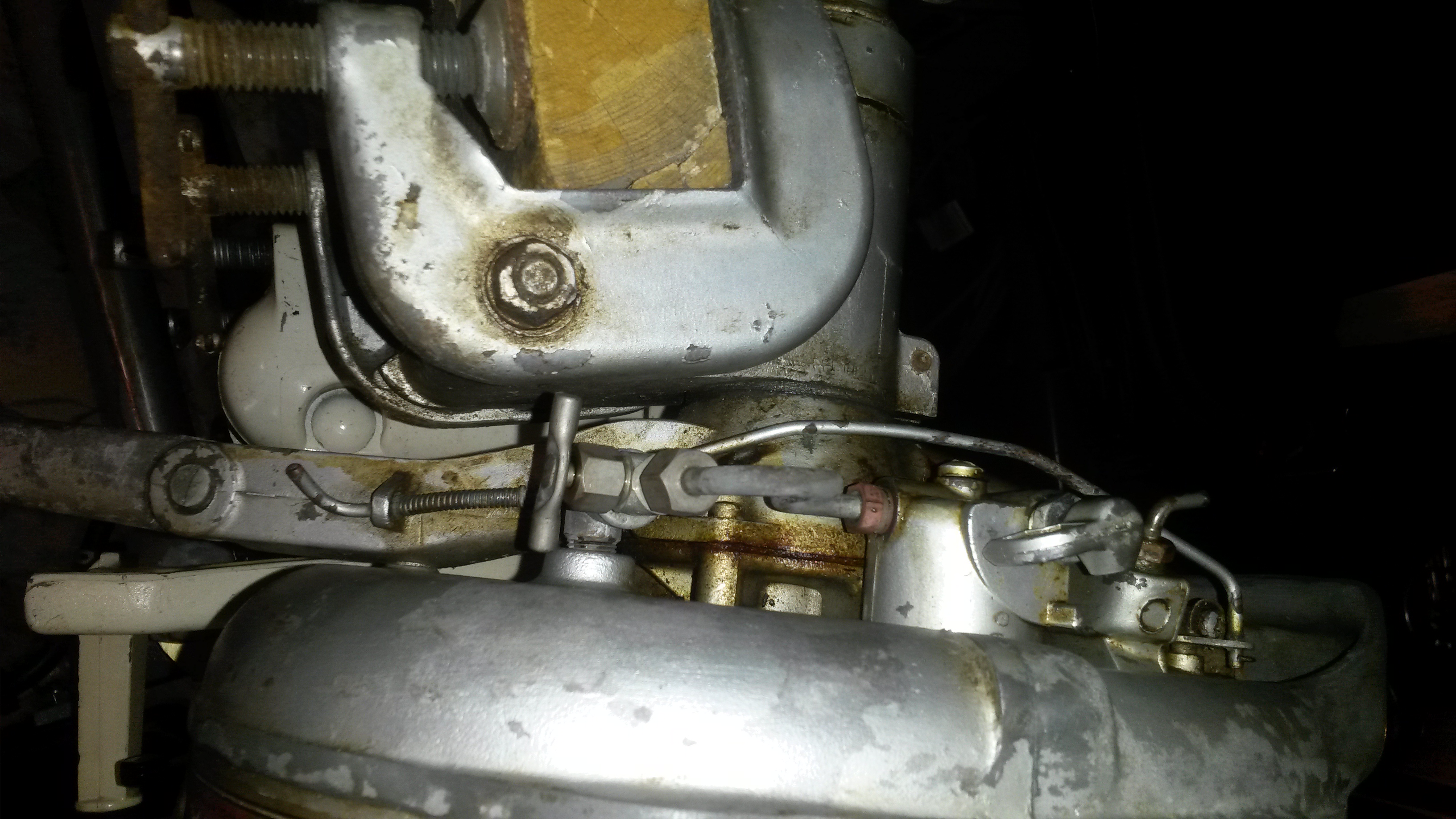 This little protrusion with a hole through it is on the casting the crankcase sits on and tiller attaches to.See it on Johnson HD & HA models,but have never seen anything attached to it .